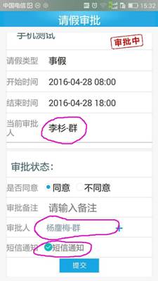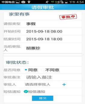 µÚÎå²½£ºÌá½»£¬ÆÚ´ýÉóÅúÈËÔ±ÉóÅú½á¹û¡£ÒòΪÊÖ»úÉóÅúÖ»ÓжÌÐÅÌáÐÑÉóÅú¹¦Ð§£¬ÍâÇÚÈËÔ±Çë¼Ù¿ÉÒÔ´òµç»°¼û¸æÉóÅúÈËʵʱÉóÅú¡£