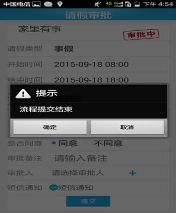 µÚÁù²½£ºµã»÷È·ÈÏ£¬ÆÚ´ýÉóÅúÈËÔ±ÉóÅú½á¹û¡£ÒòΪÊÖ»úÉóÅúÖ»ÓжÌÐÅÌáÐÑÉóÅú¹¦Ð§£¬ÍâÇÚÈËÔ±Çë¼Ù¿ÉÒÔ´òµç»°¼û¸æÉóÅúÈËʵʱÉóÅú