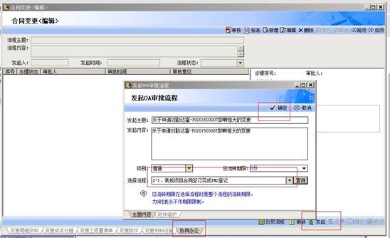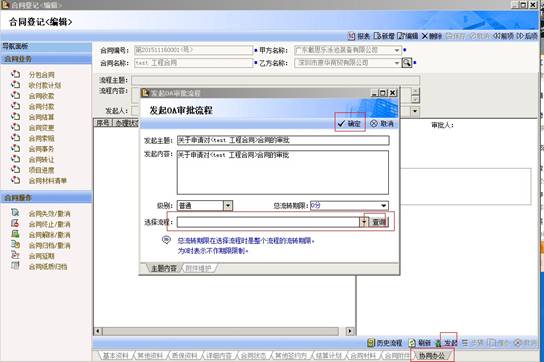 µÚÁù²½£ºµã»÷Ðͬ°ì¹«£¬µã»÷Ìᳫ£¬È·ÈÏÌᳫÄÚÈÝÎÞÎóºó£¬ÔÚÑ¡ÔñÁ÷³ÌÄÇÀïÑ¡Ôñ¶ÔÓ¦µÄÉóÅúÁ÷³Ì¡£Æ¾¾Ý²î±ðµÄÌõÔ¼ÀàÐÍÀ´Ñ¡Ôñ¶ÔÓ¦µÄÉóÅúÁ÷³Ì£¬È»ºóÈ·ÈÏ¡£È·¶¨Á÷³Ìºó£¬µã»÷È·¶¨Ö®ºó£¬Èç¹ûµ¯³öÒ»¸öÑ¡Ôñ·¢ËÍÈ˵ĵ¯´°£¬Æ¾¾Ýʵ¼ÊÇé¿öÑ¡Ôñ¶ÔÓ¦µÄÉóÅúÈË¡£